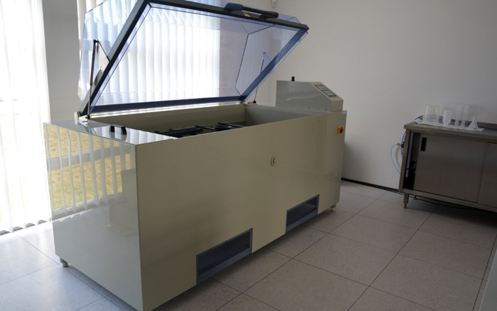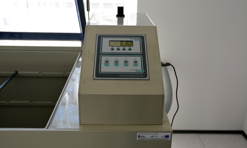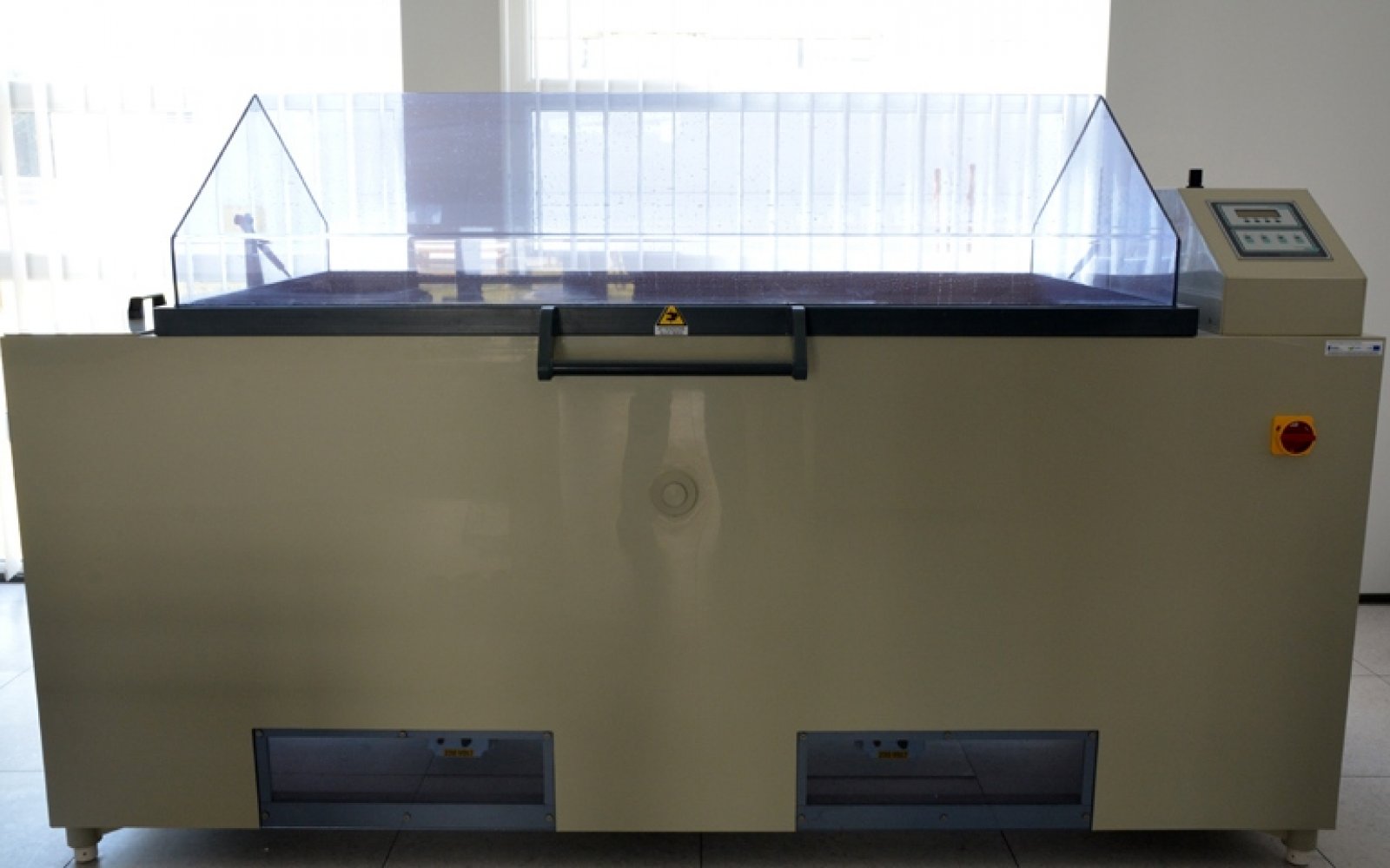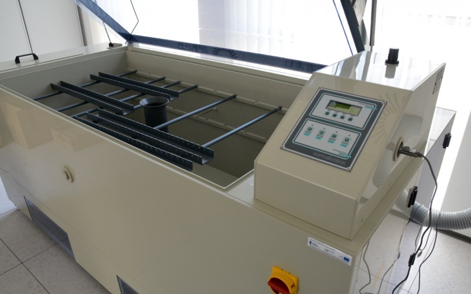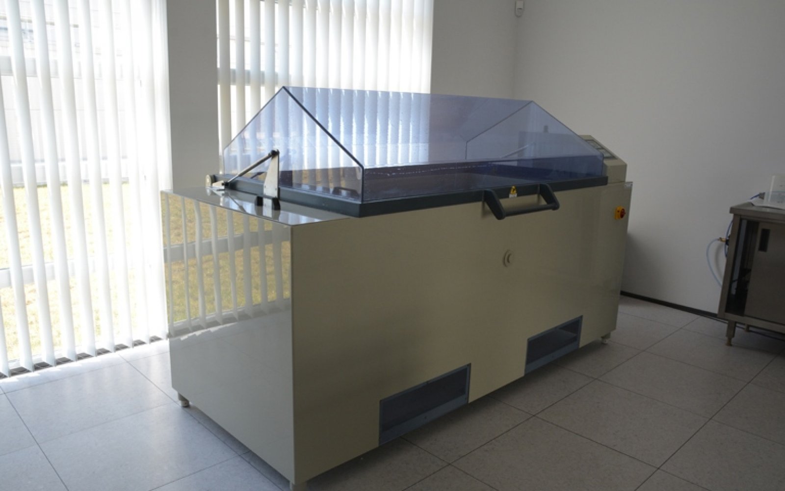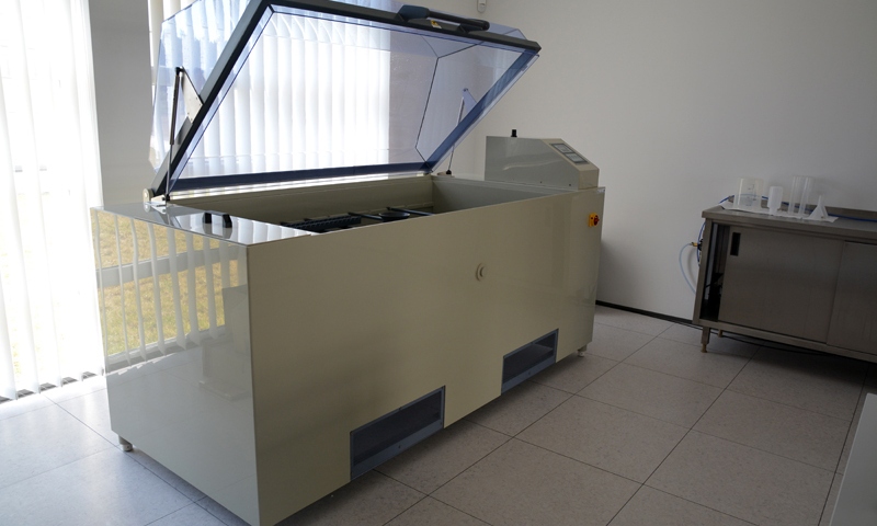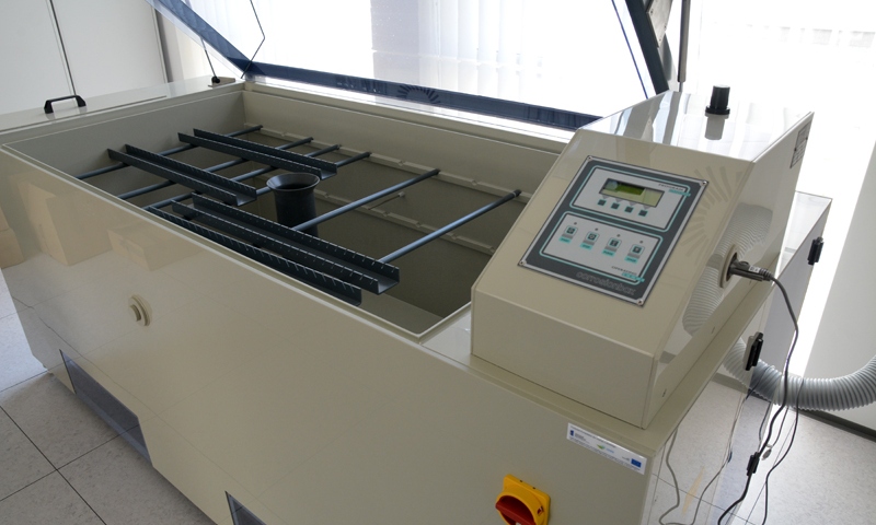 Laboratorium komory solnej wyposażone jest w urządzenie do wykonywania badania w precyzyjnie sterowanej i kontrolowanej atmosferze mgły solnej, w którym przy stabilizowanej (najczęściej podwyższonej) temperaturze badany obiekt poddawany jest przyspieszonemu starzeniu korozyjnemu w roztworze solanki rozpylanym w sposób ciągły. Laboratorium jest gotowe do prowadzenia badań zleconych przez firmy zewnętrzne, dotyczących odporności korozyjnej powłok lakierniczych i obwodów elektronicznych. Laboratorium wyposażone jest w poziomą komorę H o pojemności 1000 litrów. Urządzenie przeznaczone jest do wykonywania badań korozyjnych. Wymiary komory 1690 x 890 x 700 mm oraz wyjmowane polipropylenowe drążki umożliwiają przeprowadzenie badania dla zarówno pojedynczego dużego detalu jak i kilkunastu małych.