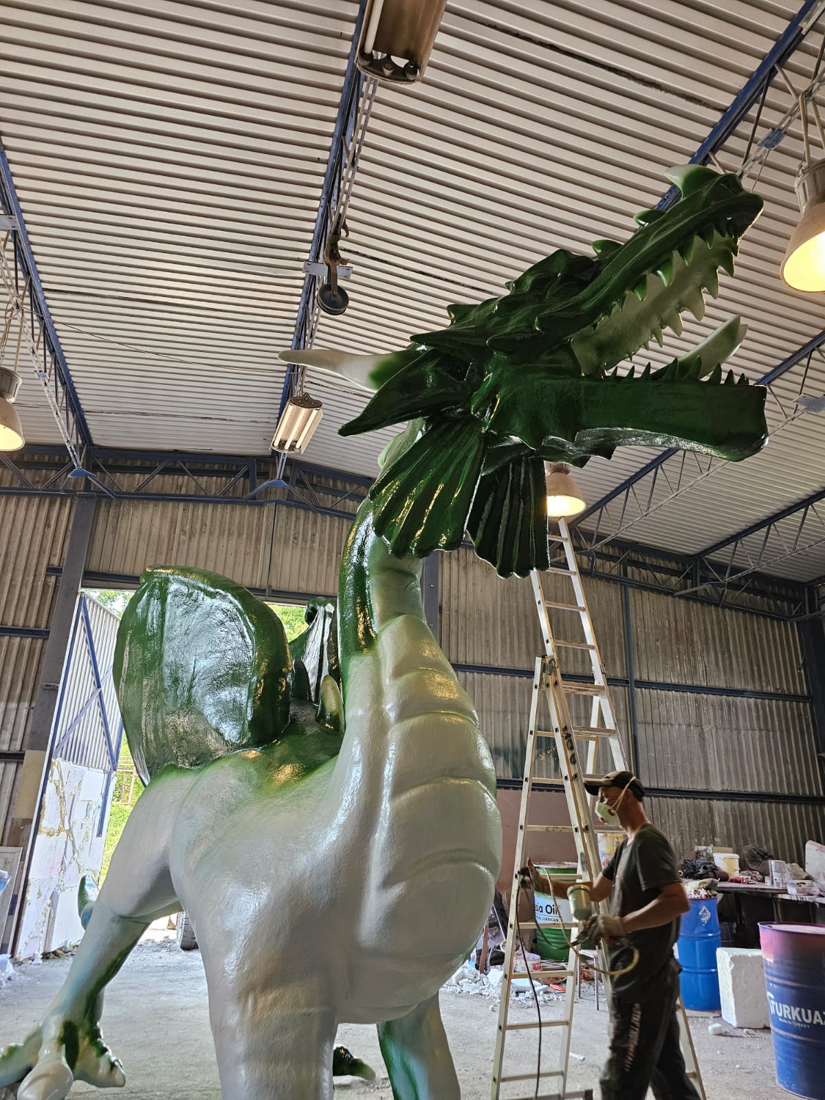Te imponujące, pięciometrowe smoki z laminatu zostały wykonane na zamówienie dla parku rozrywki Skalka, który oferuje wciągające doświadczenia. Każdy smok został starannie zaprojektowany z żywymi kolorami, szczegółowymi łuskami i dynamicznymi pozami, aby zachwycić odwiedzających i wzbogacić fantastyczną atmosferę parku. Wykonane z trwałego, odpornego na warunki atmosferyczne laminatu, te rzeźby zapewniają długotrwały efekt wizualny i integralność strukturalną, idealne do ekspozycji na zewnątrz. Doskonałe do robienia zdjęć, te majestatyczne stworzenia dodają mitycznego uroku krajobrazowi pełnemu przygód parku Skalka.